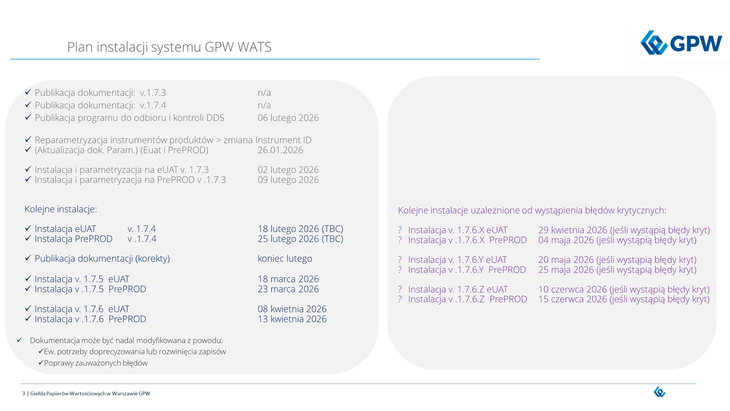 GPW WATS – Nowy harmonogram wdrożenia systemu GPW WATS