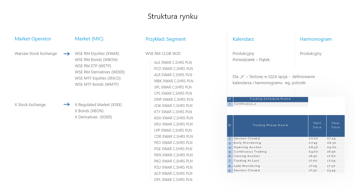 - Harmonogramy dnia sesyjnego (odpowiednie dla modelu obrotu i segmentu)