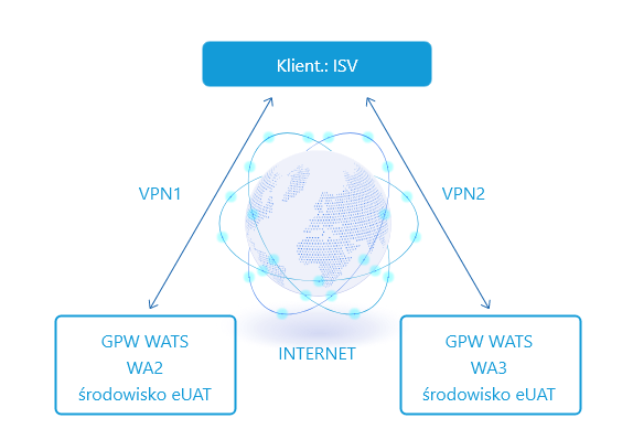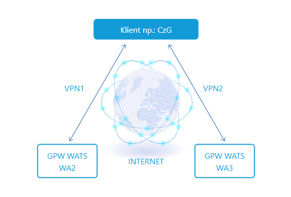 Możliwy dostęp do dwóch ośrodków WA2 i WA3 bazujące na dwóch niezależnych sesjach VPN