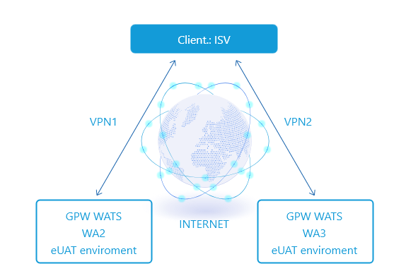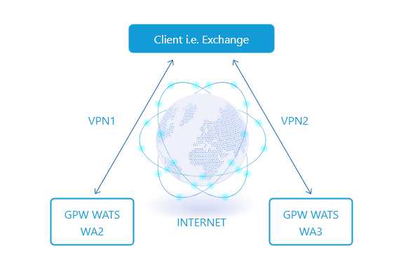 Possible access to two centers WA2 and WA3 based on two independent VPN sessions,