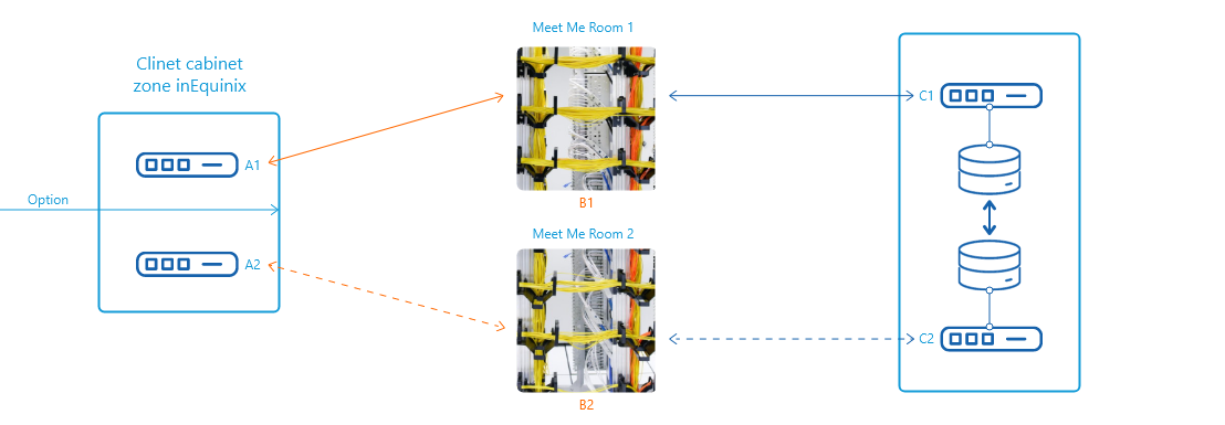 Connecting to the trading system with two independent connections within one datacenter.